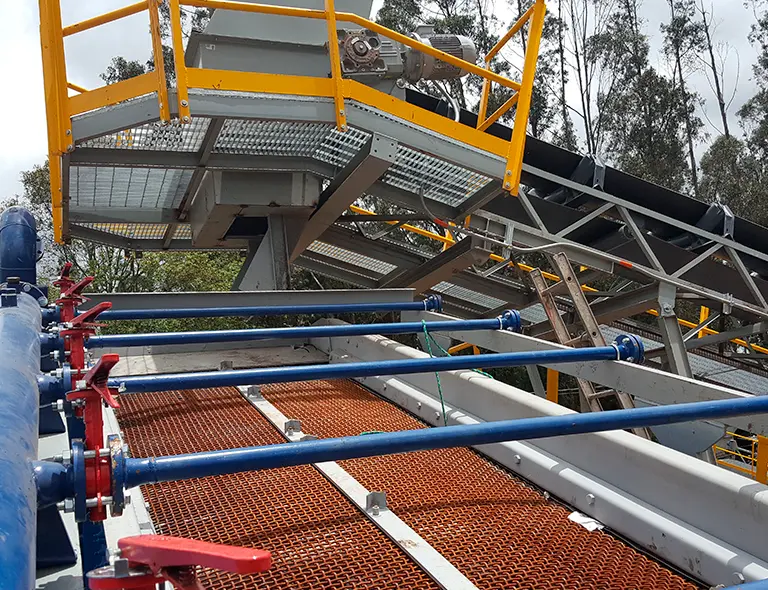 Integramos sistemas de lavado en nuestras zarandas vibratorias para optimizar la limpieza y clasificación de materiales. Este sistema, compuesto por barras rociadoras estratégicamente distribuidas, permite eliminar arcillas, finos y contaminantes adheridos, garantizando una separación más precisa y un producto final de mayor calidad. confiabilidad en operación continua.